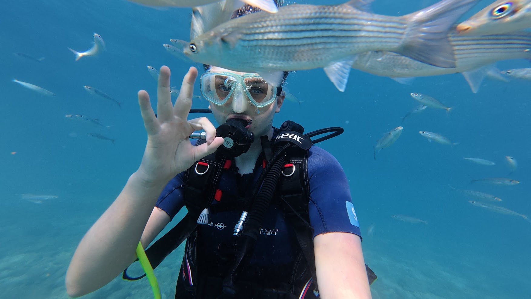 These try dives unfold in the tranquil waters of Kalamar Bay, where the sea remains calm and teems with diverse marine life. Participants receive a brief introduction to diving fundamentals, covering equipment usage and underwater protocols, before venturing into the water under the supervision of an instructor. Throughout the session, an instructor accompanies each participant, ensuring correct execution of tasks.